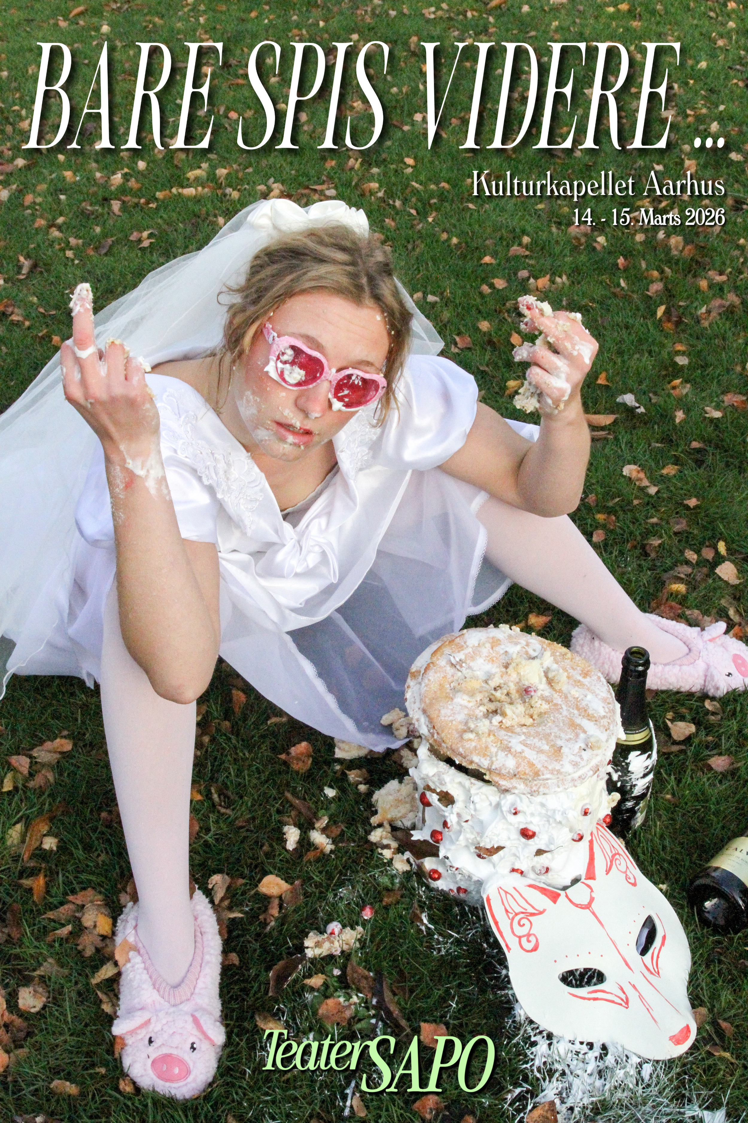 Velkommen til Teater SAPO's bombastiske debutforestilling BARE SPIS VIDERE. Forestillingen er en nyfortolkning af Shakespeares klassiske komedie STORT STÅHAJ FOR INGENTING, som følger den privilegerede overklasse og deres selvforskyldte problemer.